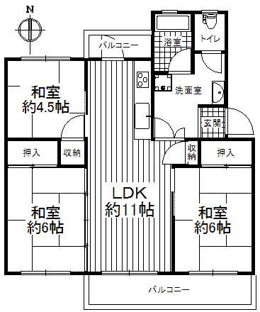 | 間取内容 | LDK11畳1室 和室6畳2室 和室4.5畳1室 |