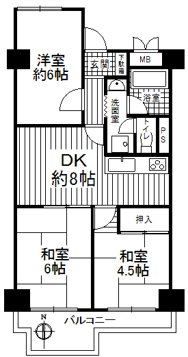 間取内容 DK8畳 洋室6畳 和室6畳 和室4.5畳