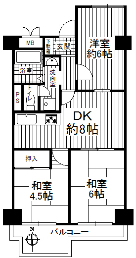 | 間取内容 | DK8畳1室 洋室6畳1室 和室6畳1室 和室4.5畳1室 |