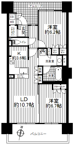 | 間取内容 | LDK14.3畳1室 洋室6.7畳1室 洋室6.2畳1室 |